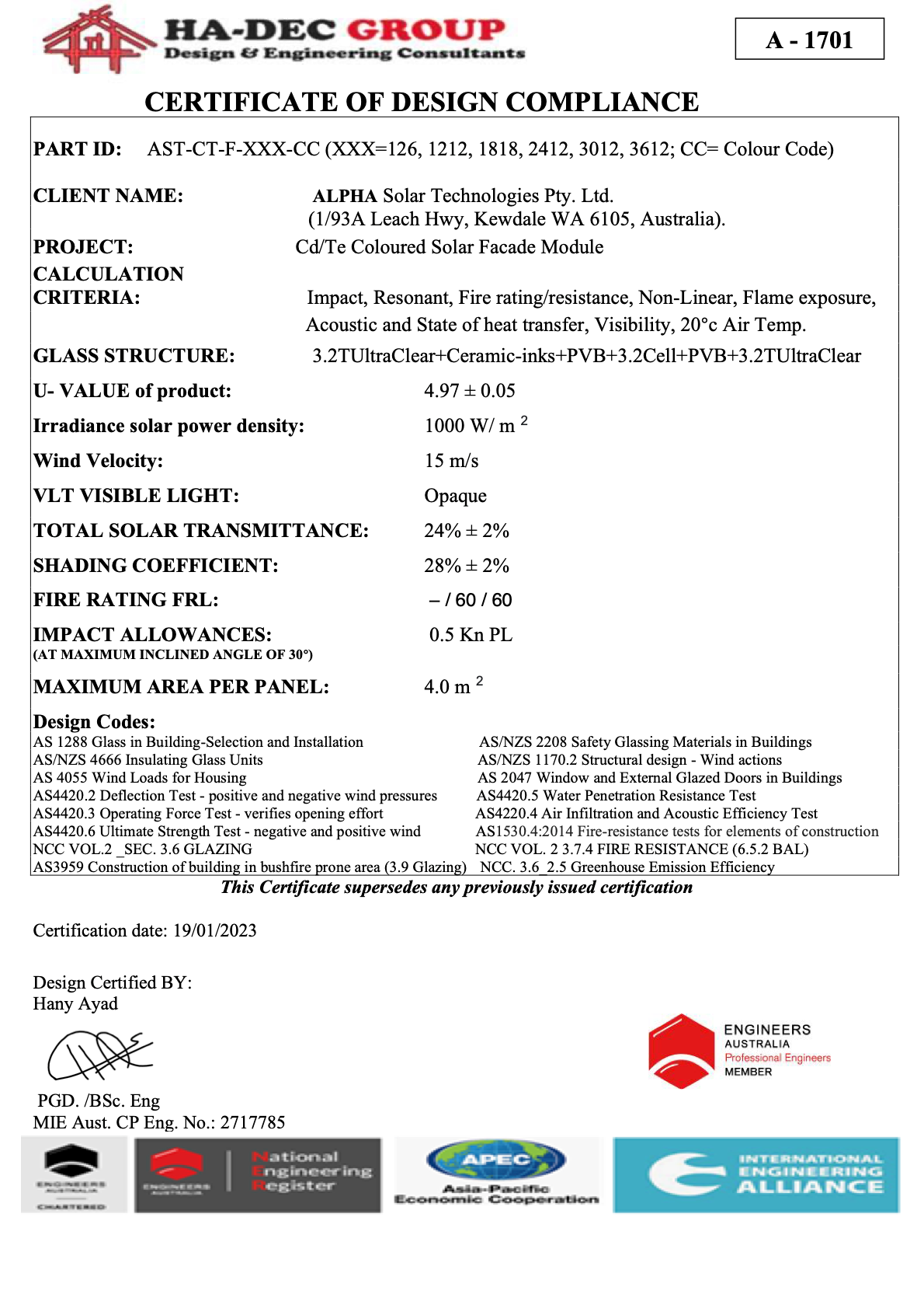 Download PDF - Certificate of Design Compliance - 1701Cd/Te Coloured Solar Facade Module